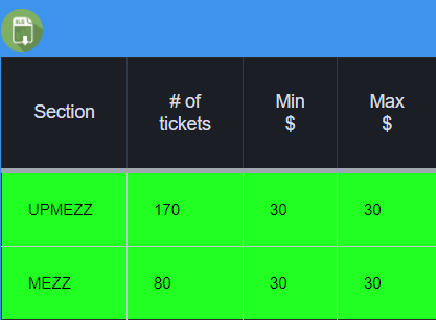 As you can see from this Data Table, there are only 170 Upper Mez Tickets and 80 Lower Mezz Tickets. (With the lowers being more desirable.)