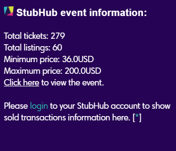 There are also 279 Tickets left on Stubhub, which we should keep in mind.